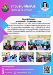 ข่าวประชาสัมพันธ์ รับสมัครนักเรียน ปีการศึกษา 2569 ประกาศรับน...Read More ธ สถิตในดวงใจไทยนิรันดร์ น้อมรำลึกใ...Read More โรงเรียนบ้านมาบบัว ได้รับการประกันคุณภาพภายนอก จากสำนักงานรับรองมาตรฐานและประเมินคุณภาพการศึกษา (องค์การมหาชน) โรงเรียนบ้...Read More ผู้ตรวจราชการกระทรวงศึกษาธิการ ลงพื้นที่ตรวจราชการ ติดตามการขับเคลื่อนนโยบาย ศธ. ณ โรงเรียนบ้านมาบบัว ผู้ตรวจราช...Read More กิจกรรมวันเฉลิมพระชนมพรรษา วันที่ 4 ม...Read More การพัฒนาและการส่งเสริมการจัดการเรียนรู้ด้วยสื่อเทคโนโลยีดิจิทัล (Obec content Center) วันที่ 22 ...Read More นิเทศการเรียนการสอน ภาคเรียนที่ 1 ปีการศึกษา 2568 วันพุธที่ ...Read More ประชุมผู้ปกครองนักเรียน ภาคเรียนที่ 1 ปีการศึกษา 2568 วันศุกร์ที...Read More Load More โรงเรียนบ้านมาบบัวสำนักงานเขตพื้นที่การศึกษาประถมศึกษา สงขลา เขต 1 ภาพกิจกรรม กิจกรรมนักเรียน คลิปวีดีโอกิจกรรมสื่อสารสร้างสรรค์ รู้เท่าทันยาบ้า How to say no to YABA แสดงโดยนักเรียนโรงเรียนบ้านมาบบัว Posted onตุลาคม 3, 2567ตุลาคม 3, 2024 คลิกรับชมค่ะ กิจกรรมนักเรียน 9 ความสุข ณ โรงเรียนบ้านมาบบัว Posted onตุลาคม 3, 2567ตุลาคม 3, 2024 คลิกรับชมค่ะ ข่าว โรงเรียนบ้านมาบบัวขอแสดงความเสียใจ กับเหตุการณ์เพลิงไหม้รถบัสทัศนศึกษา ของโรงเรียนวัดเขาพระยาสังฆาราม จังหวัดอุทัยธานี ขอเป็นกำลังใจให้ผ่านช่วงเวลาที่ยากลำบากนี้ ด้วยความอาลัยอย่างที่สุดค่ะ Posted onตุลาคม 3, 2567ตุลาคม 3, 2024 ภาพกิจกรรม กิจกรรมมอบทุนการศึกษา Posted onตุลาคม 1, 2567ตุลาคม 1, 2024 ภาพกิจกรรม นางสาวภฤศญา เสนาบุณยกร ผู้อำนวยการโรงเรียนบ้านมาบบัว มอบเกียรติบัตรให้กับนักเรียน และครูผู้ฝึกซ้อม รายการแข่งขันประกวดวาดภาพระบายสี ในหัวข้อ “ป๋าเปรมที่หนูรู้จัก”ช่วงชั้นที่ 1-3 ได้รางวัลระดับดีเด่น และรายการประกวดคลิปวีดีโอ หัวข้อ ภัยในสถานศึกษา4 กลุ่มภัย ได้รางวัลในระดับยอดเยี่ยม Posted onสิงหาคม 7, 2567สิงหาคม 7, 2024 ภาพกิจกรรม กิจกรรมการเรียนการสอนวิชาวิทยาการคำนวณ ให้ผู้เรียนได้ฝึกปฏิบัติ และสร้างสรรค์ชิ้นงาน ได้อย่างมีประสิทธิภาพ มีห้องคอมพิวเตอร์ที่ทันสมัย นักเรียนได้ใช้เครื่องคอมพิวเตอร์ 1 คน ต่อ 1 เครื่อง Posted onสิงหาคม 5, 2567สิงหาคม 5, 2024 ลิ้งที่เกี่ยวข้อง หน่วยงานที่เกี่ยวข้อง